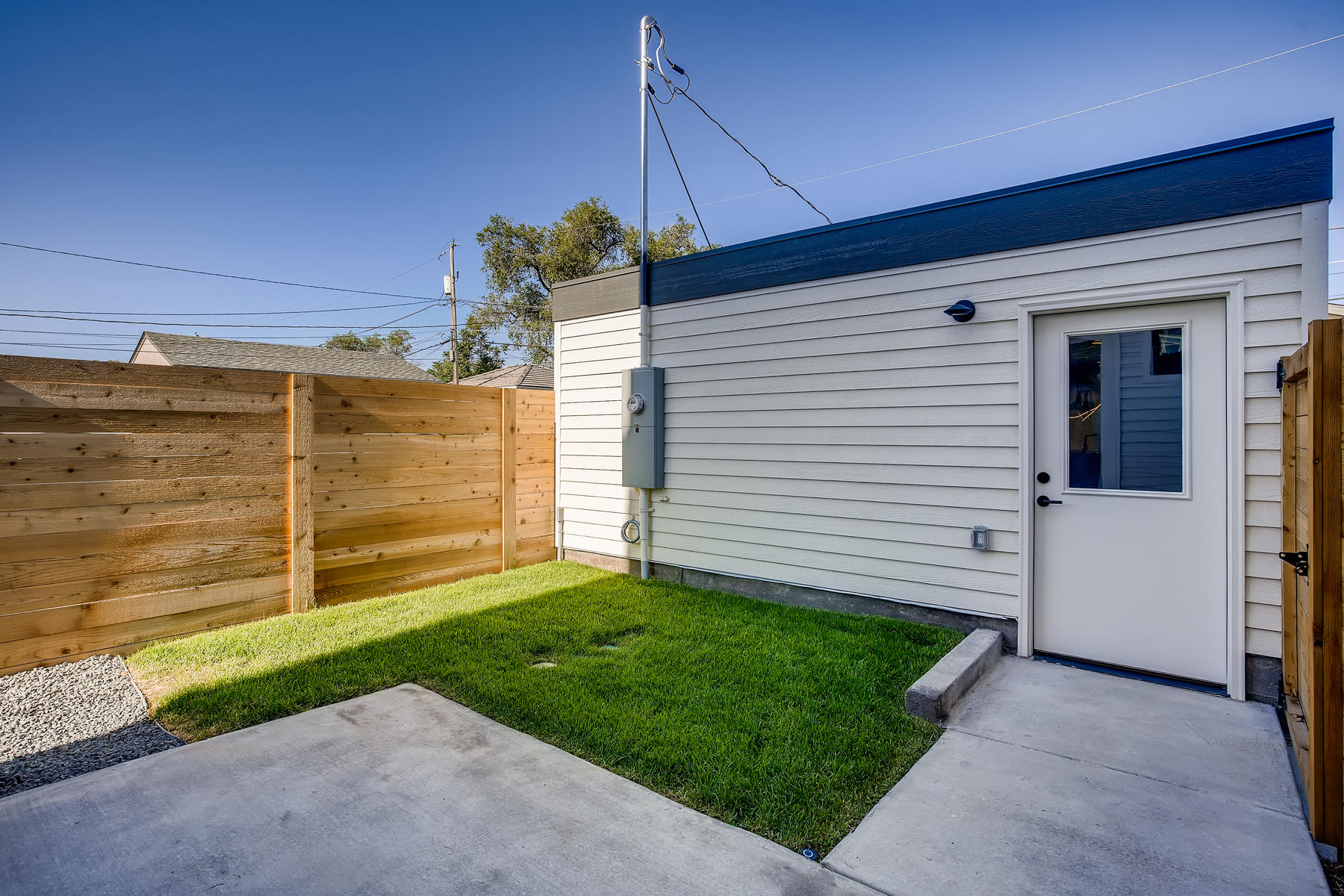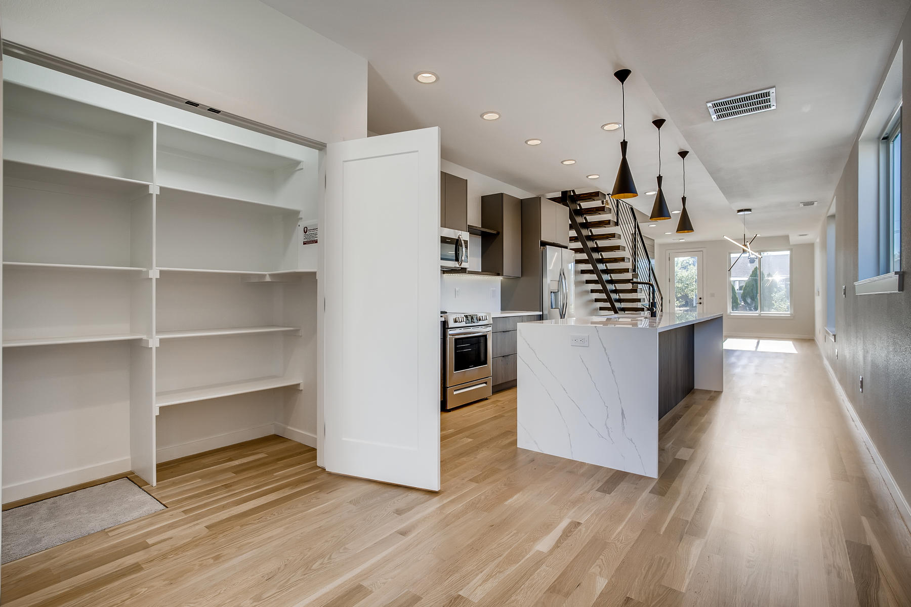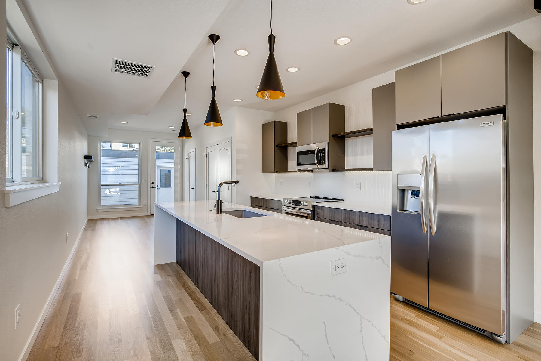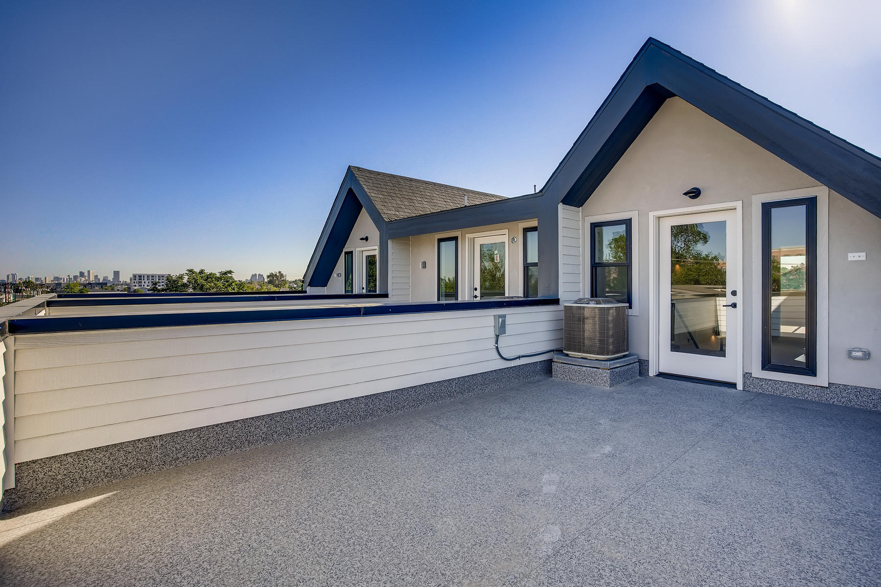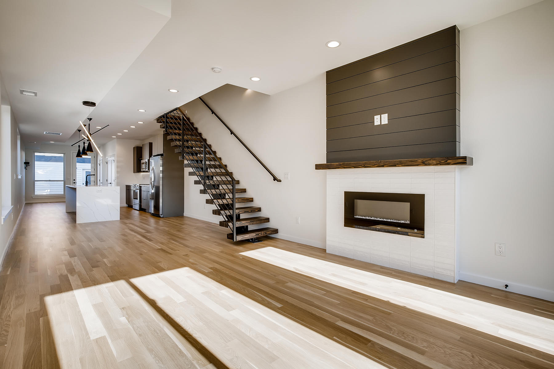 odern 3 bed/4 bath new construction attached home (1 unit of 3-plex) in Denver's hot Rosedale/Overland neighborhood. 3 stories of functional living space with walk-out west facing rooftop balcony. Main floor features a large kitchen with pantry, eat-in waterfall quartz island, modern cabinetry, tile backsplash, stainless appliances, & more. Custom monorail staircase with floating wood stair treads. Living room with oak hardwoods, electric fireplace, mantel & tile surround. Master w/large closet & ensuite bath with double vanity. Andersen windows. 3rd floor features a large bedroom, 3/4 bath, flex/party room with wet bar & a large west facing balcony with mountain views. 2 car detached garage. Back yard patio. Sprinkler system. Central A/C. High efficiency furnace & water heater. No HOA. Less than 1/4 mile from Evans light rail station. Close to shops on Broadway, DU, Platte Park/Wash Park & more. Taxes have not yet been assessed; buyer to verify taxes. Buyer to verify square footage. Photos on listing are of other unit(s) with similar finishes.