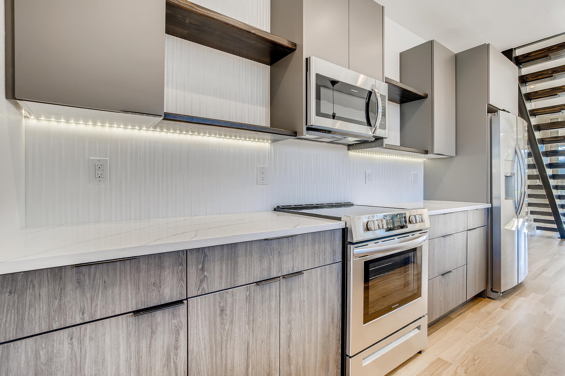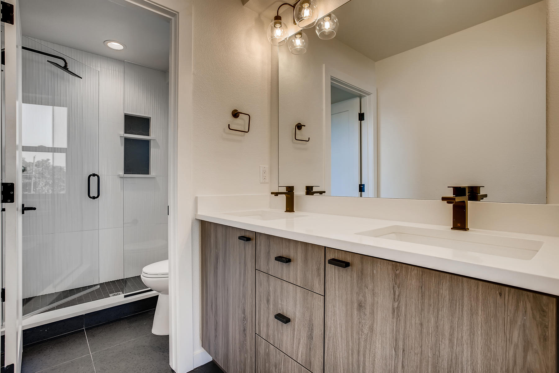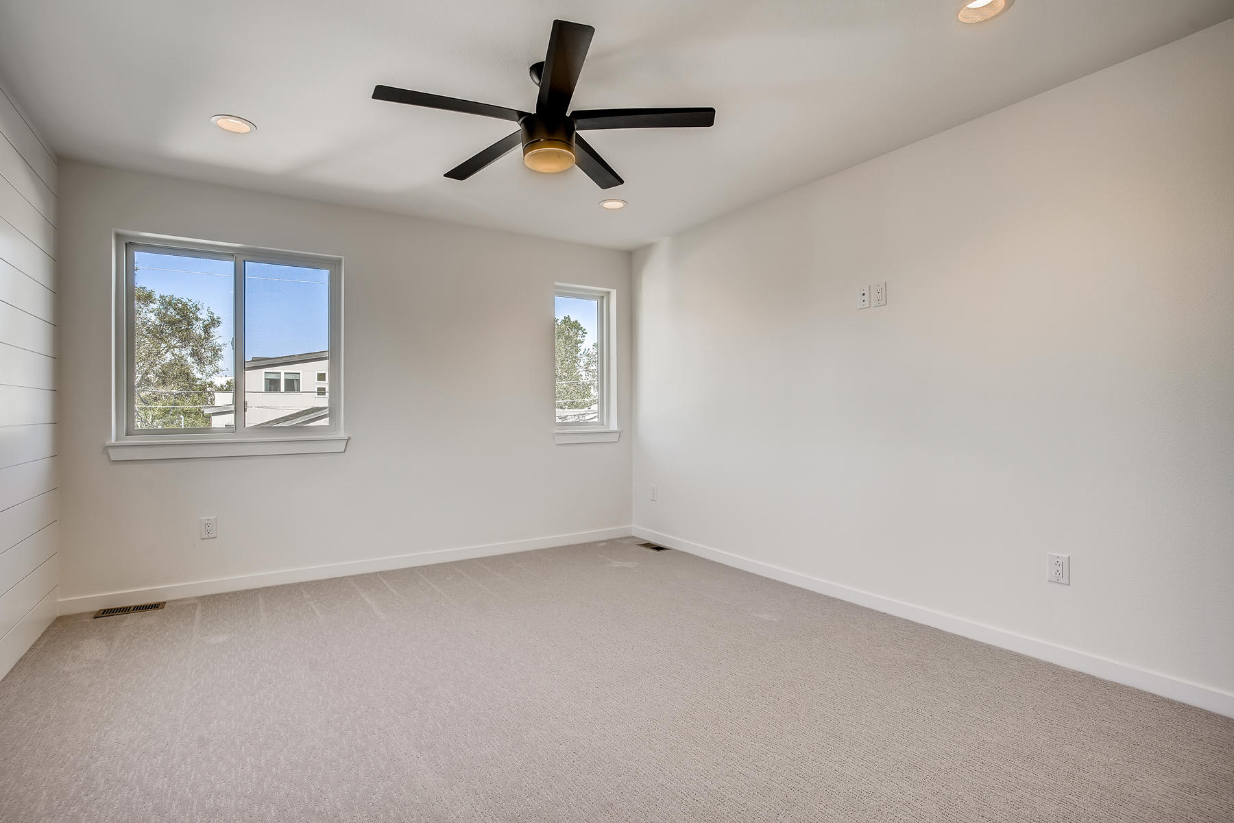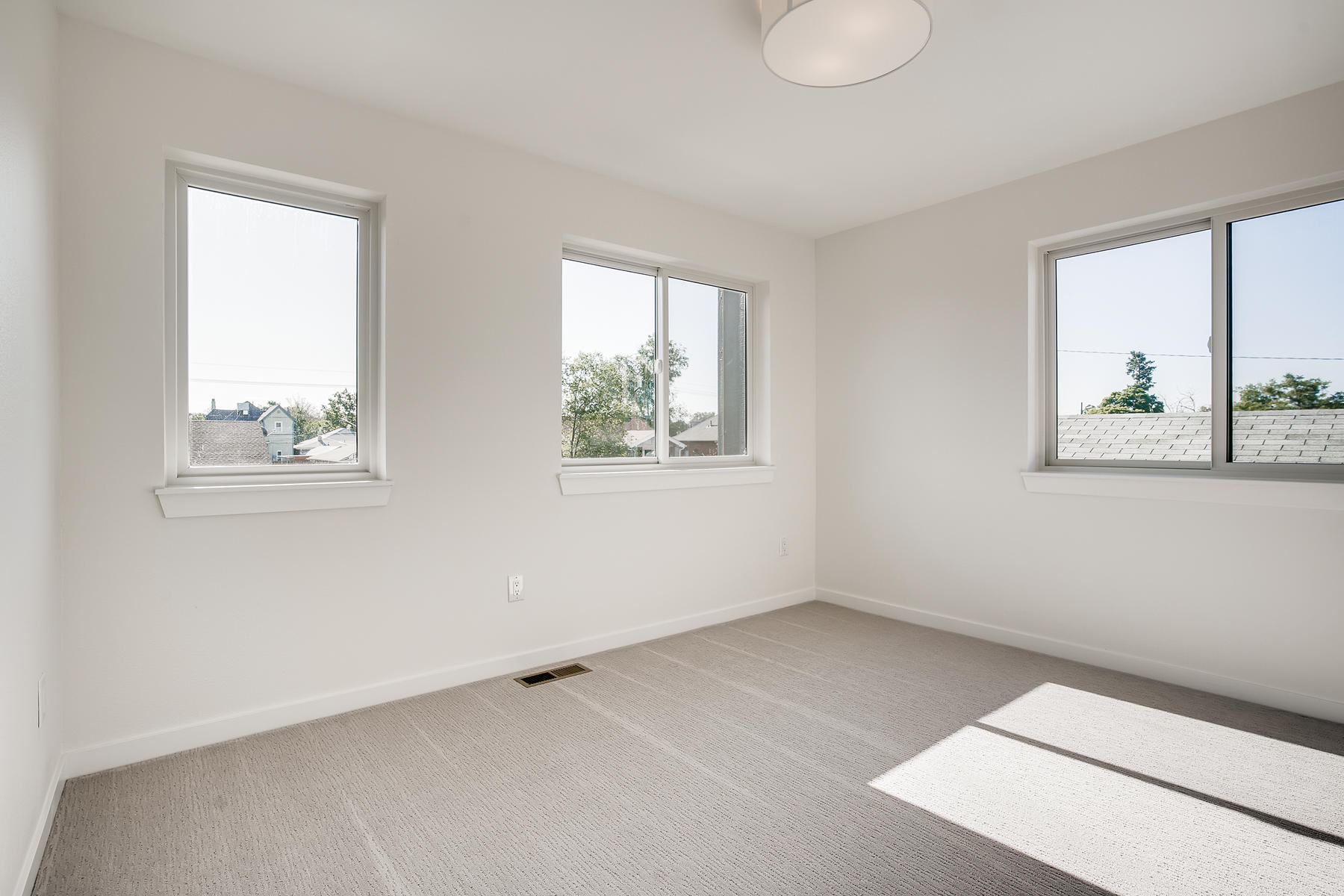 odern 3 bed/4 bath new construction attached home (1 unit of 3-plex) in Denver's hot Rosedale/Overland neighborhood. 3 stories of functional living space with walk-out west facing rooftop balcony. Main floor features a large kitchen with pantry, eat-in waterfall quartz island, modern cabinetry, tile backsplash, stainless appliances, & more. Custom monorail staircase with floating wood stair treads. Living room with oak hardwoods, electric fireplace, mantel & tile surround. Master w/large closet & ensuite bath with double vanity. Andersen windows. 3rd floor features a large bedroom, 3/4 bath, flex/party room with wet bar & a large west facing balcony with mountain views. 2 car detached garage. Back yard patio. Sprinkler system. Central A/C. High efficiency furnace & water heater. No HOA. Less than 1/4 mile from Evans light rail station. Close to shops on Broadway, DU, Platte Park/Wash Park & more. Taxes have not yet been assessed; buyer to verify taxes. Buyer to verify square footage. Photos on listing are of other unit(s) with similar finishes.