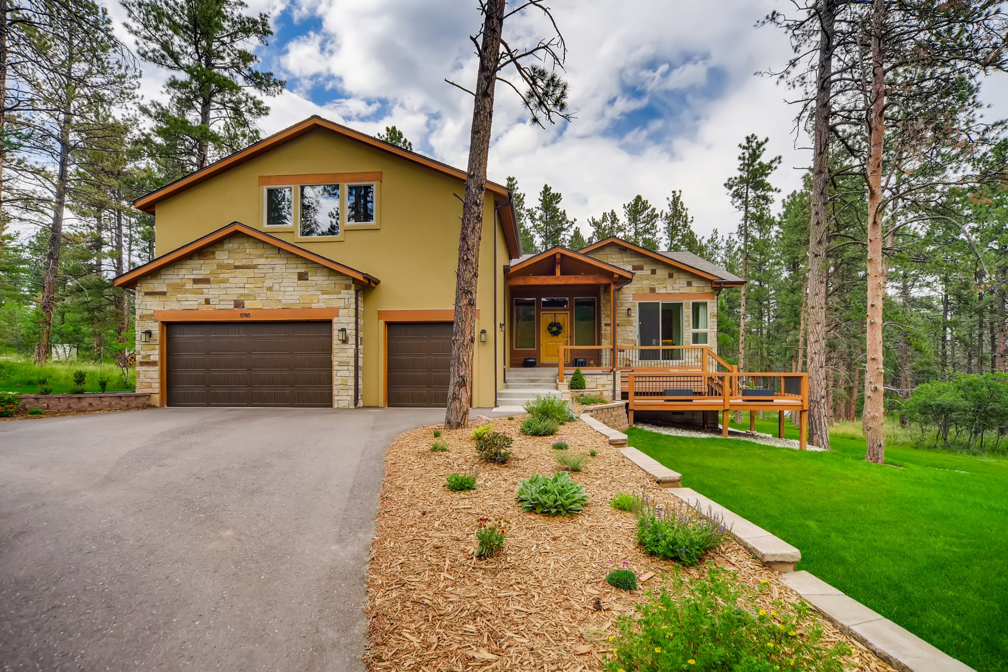 Absolutely stunning, pristine, & immaculate 2019-built newer construction custom luxury home in Larkspur's private Perry Park community on large nearly 1 acre landscaped lot. If you're looking for private, serene, & move-in ready luxury living, this is it. This 4 bedroom/4 bath ranch-style home features a huge living room with 10 ft ceilings, gas fireplace with tile surround, & custom wood mantel. Hardwood floors throughout main level. Luxury kitchen with high-end stainless steel Kitchen Aid appliances (including down-draft gas range), undercabinet lighting, reverse osmosis system, large kitchen table nook room off kitchen, an eat-in island, & large walk-in pantry. Main floor features an enormous master bedroom with walk-out sitting area/patio, a 5-piece ensuite luxury master bath, double vanity, large walk-in closet, 2 secondary bedrooms with jack & jill full bath between them, & a private home office or flex room with access to exterior deck. Large formal dining room with tons of windows bringing in natural light. Enormous bonus 2nd floor/upstairs loft-style bedroom or flex space with 10'4" tall vaulted ceilings, and an upstairs 3/4 bath as well. Custom window shades/blinds & curtains are included. Full 2200+ square foot unfinished walk-out basement with rough-in plumbing ready for future bathroom. Radon mitigation system in place. Central A/C. Huge extra deep 3 car attached garage (drywalled, finished & insulated, with smart/wifi garage door opener), with additional private guest parking space off driveway. Exterior features a large multi-level wood front wrap-around deck, a 170+ sq ft back deck with custom stairs down to back yard, new front & back sprinkler system, a huge wrap around yard, professional landscaping, beautiful plants, & much more. 2 wood decks. Large 0.92 acre lot. Pristine landscaping! City water & sewer. NO HOA. Close to Perry Park Country Club & golf course..