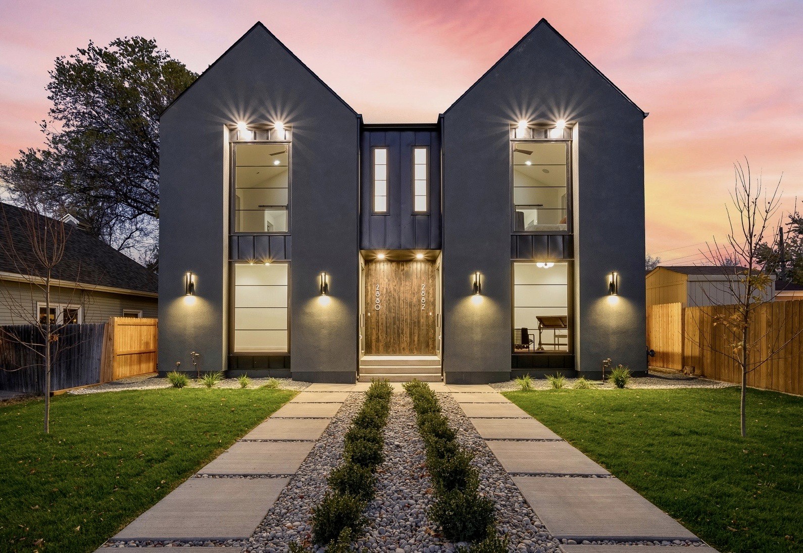 Bold. Modern. Cool. 4 bed/4 bath new construction 1/2 duplex in super hot south Broadway unlike anything SoBo has seen yet. Luxury custom finishes & details throughout. Thoughtful design. Higher quality custom finishes. Modern aesthetic. Designer details & upgrades. Kitchen w/soft-close cabinetry by Showplace, eat-in waterfall island, huge pantry, champagne bronze faucet & pot filler, under cab + under-island lighting, custom oak shelving, $900 71" linear LED suspension light, in-ceiling speakers & deluxe Kitchen Aid appliances incl convection gas range & $1600 top-loading drawer-style microwave. Huge living room w/linear gas fireplace, designer tile (from Spain) surround, 12 ft Marvin Integrity (wood interior/composite exterior) sliding door. Huge master w/hardwoods, 12'8" tall vaulted ceilings, walk-in closet, custom oak shelves, ultra-quiet Modern Forms smart fan (integrates w/smart devices) & in ceiling speakers. Huge ensuite master bath w/ vaulted ceilings, soaker tub, huge double shower & Porcelanosa tile from Spain. Andersen fibrex composite windows (2x the strength of vinyl). Hardwoods also in hallway. Custom abstract iron railings & monorail staircase w/floating wood treads. Home office w/custom glass office door, oak shelving & tons of natural light. Finished basement w/big rec room. 2 beds upstairs w/vaulted ceilings. 4th bedroom in basement w/huge walk in closet. Switched patio outlet in soffit for party lights. Pre-wired for audio in living room (5.1 surround), basement (7.1 surround), master bedroom (ceiling speakers installed), kitchen (ceiling speakers installed) w/receiver included. Central networking panel. LED lighting in entire home for energy efficiency. High efficiency furnace & H20 heater. Nest thermostat. Central A/C. Custom stainless mailbox & address #s. 2 car garage w/wifi/smart opener. Large private back yard w/patio. No HOA.