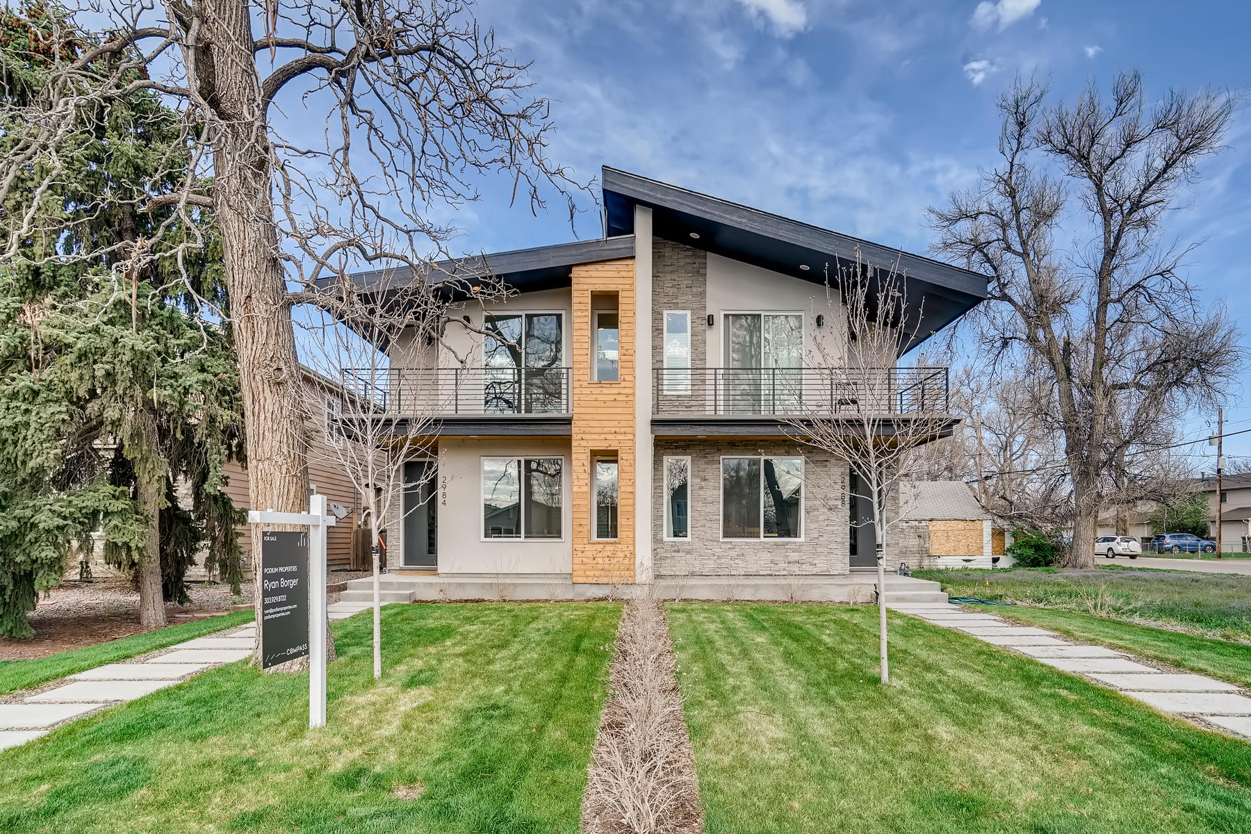 Modern 4 bedroom/4 bath 1/2 duplex in the hot south Broadway area! Accordion style sliding 'win-door' which opens & expands the living room outside! Kitchen features soft close white shaker maple cabinets, an eat-in waterfall honed quartz island, undercabinet lighting, & deluxe appliances. Large master with vaulted ceilings. Gray-wash solid oak hardwood flooring. Large panty. Monorail staircase & floating stair treads. Linear gas fireplace with contemporary stacked tile surround. Custom live-edge wood floating vanity in powder bath. Finished basement with large recreation room with wet bar & custom shelves, bedroom with large walk-in closet, a 3/4 bath & an excellent finished bonus room that is perfect for a home office, workout/yoga room, craft room, or additional storage space. Various rooms are pre-wired for audio & networking. 2 car detached garage with wifi/smart opener. No HOA. A party wall agreement is in place.